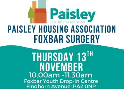 News Click here to view the latest edition of our bulletin Paisley Housing Association Foxbar Area Surgery Thursday 13 November 2025 Paisley Housing Association is hosting a surgery in you community, this is your opportunity to drop in and meet our staff. Welcome to DigiKnowVember 2025! Renfrewshire’s month-long digital inclusion drive with 150+ events to help people learn, connect, and explore digital opportunities. Annual Report and Landlord Report 2024-25 Paisley Housing had a busy and successful year in 2024–25, and this report shares key achievements and performance highlights. Creative Cuppa RIG Arts Event Renfrewshire residents are invited to a free, all-ages Paint Party hosted by RIG Arts this Friday, 17 October 2025, from 1:30PM to 4:30PM Art Wise Free art sessions for parents and children aged 4-11 Paisley Housing Association Surgeries Multiple Dates Paisley Housing Association is holding surgeries in you community, this is your opportunity to drop in and meet our staff Get Involved in Our Resident Voice Panel Its an exciting time to join our Resident Voice Panel Summer Newsletter 2025 We’re excited to launch our very first Digital Newsletter! Get involved — become a PHA Member for just £l! Help us to help you to share your community by being a member of the Association. Get Safe Online Student Campaign September 2025 Starting uni means your life goes digital fast — from lectures to late-night group chats. Stay sharp online with simple safety tips The STAR Project: Autumn 2025 Update The START Project Autumn programme has a number of events scheduled for the Autumn 2025
